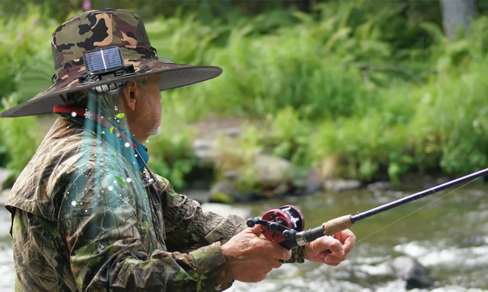 To my amazement, Tom's hat wasn't just some regular sun hat – it had this built-in fan powered by solar energy! He showed us how the fan created this constant, cooling breeze around his head and face, while the wide brim provided tons of sun protection.